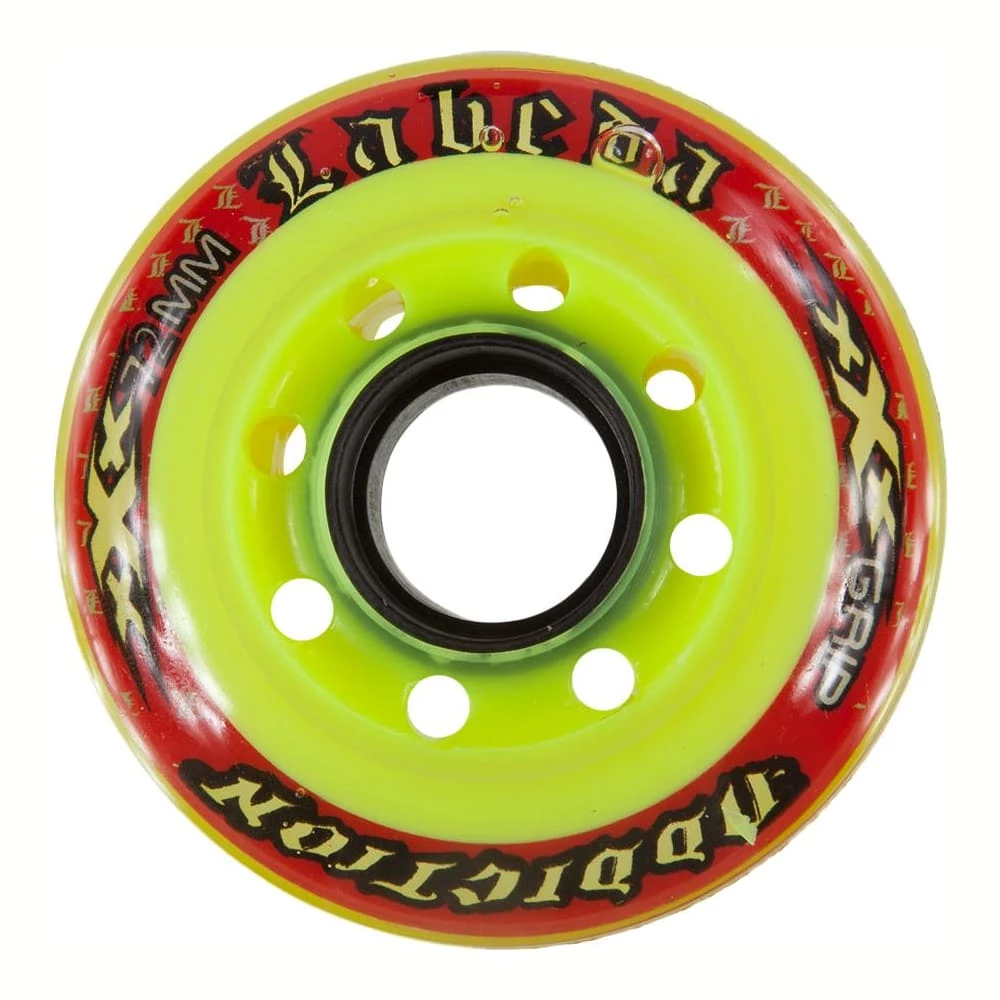 The Labeda Addiction Inline Hockey Wheel will revolutionize the future of inline hockey wheels. Indoor wheels designed for tile surfaces with an outer urethane hardness between 83-86A. That is not a misprint! Indoor wheels with a outer urethane hardness that is as hard as most outdoor wheels but grips better than the softest wheels available. What does that mean? Wheels that will grip and wear like nothing you have ever seen before. This Addiction is one wheel you cannot stop using.