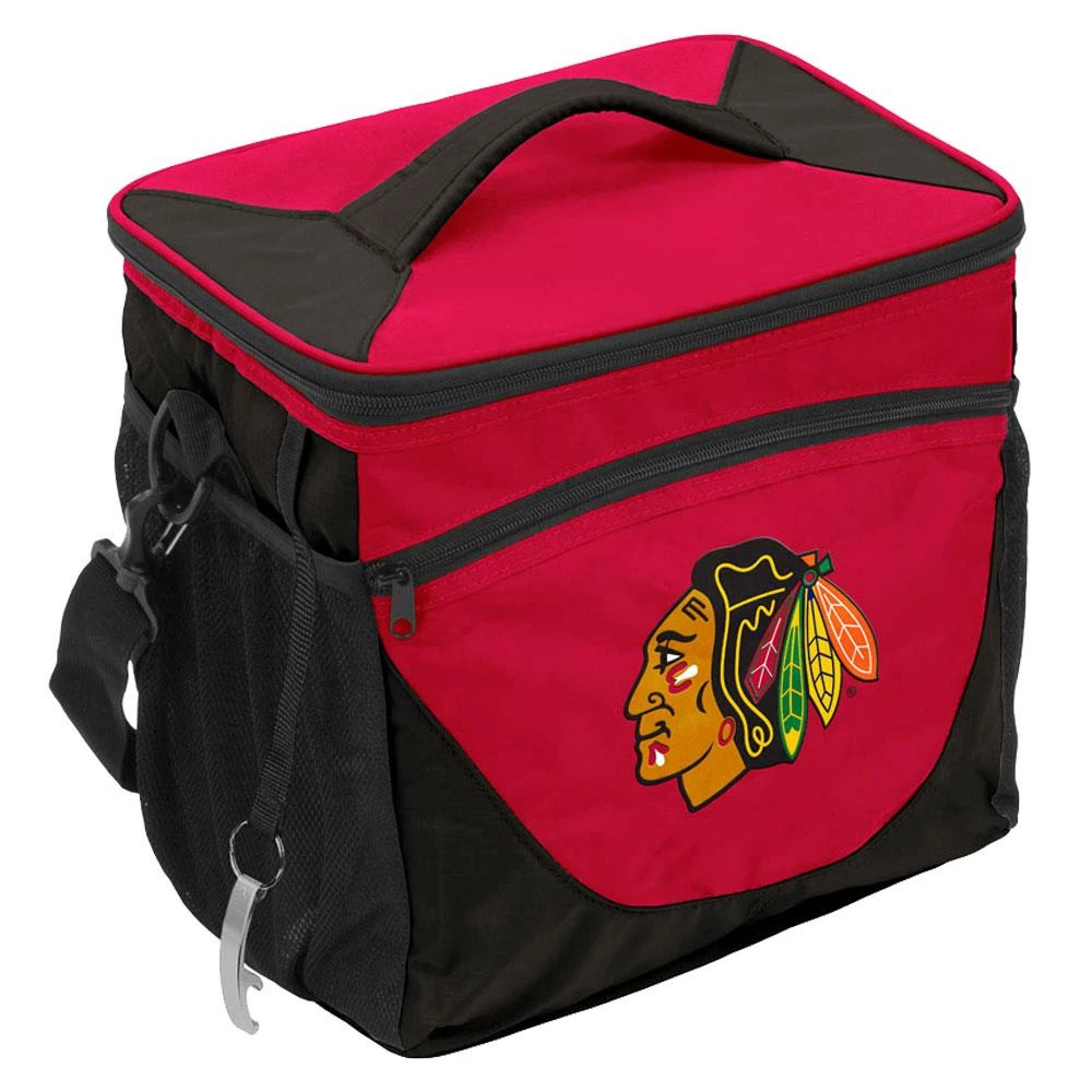 The 24 Can Cooler is a must-have accessory for sports fans on the go. This functional and versatile cooler features your team’s colors and team logo. The heat-sealed, leak-proof lining keeps up to 24 of your favorite standard 12oz. canned beverages cold and holds ice for 24 hours.