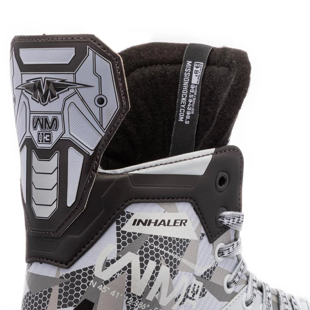 The Mission RH Inhaler WM03 inline skate offers top innovation to the player looking for a performance-level inline model with great features found throughout the skate, from the boot to the wheels.