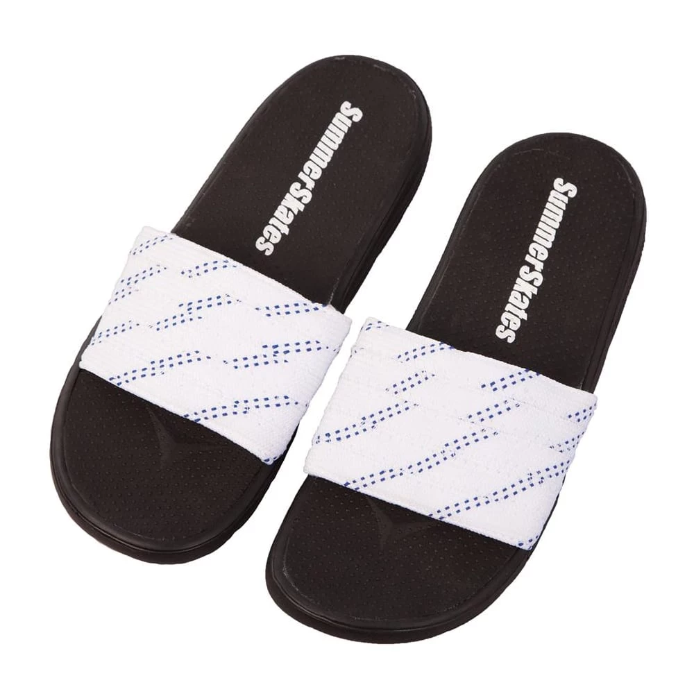 SummerSkates sandals made with real hockey laces are the perfect complement of comfort, performance, value, and sports fashion. Designed for all-terrain use indoors or outdoors, you will be able to show your game at all times of the year from the locker room to the street to the beach.