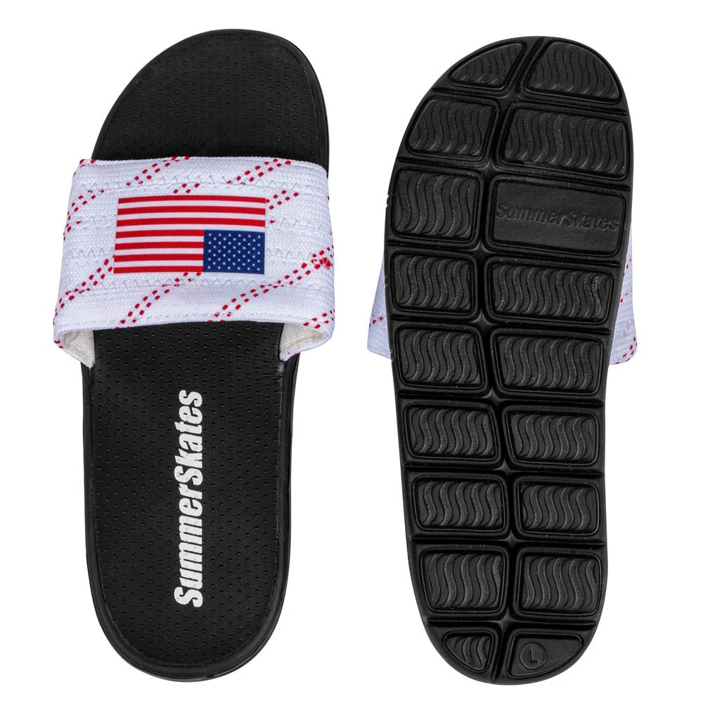 SummerSkates sandals made with real hockey laces are the perfect complement of comfort, performance, value, and sports fashion. Designed for all-terrain use indoors or outdoors, you will be able to show your game at all times of the year from the locker room to the street to the beach.